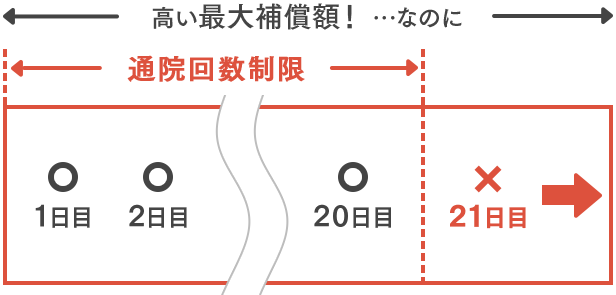 このような日額制限、回数制限があると最大補償額は大きくても、